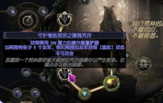 然后就重点了,后面是三个插槽,女猎人会卖你很多咒符,一开始没研究,以为跟珠宝类似,直到看见店里有个以前我的最爱升华【守护者猛攻光环】居然只是咒符上面一个词缀,我才去编年史认真研究了咒符,