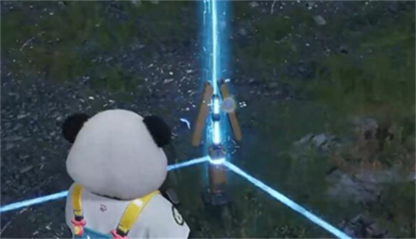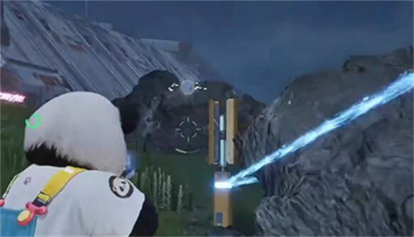 2、先用手里的道具,对准位于玩家正前方的电柱设备并发射。