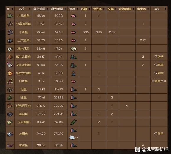 当一条鱼的重量在这类鱼重量范围的前30%,会被算作是“足够重”的鱼。(下面是鱼的种类及重量范围的表格)