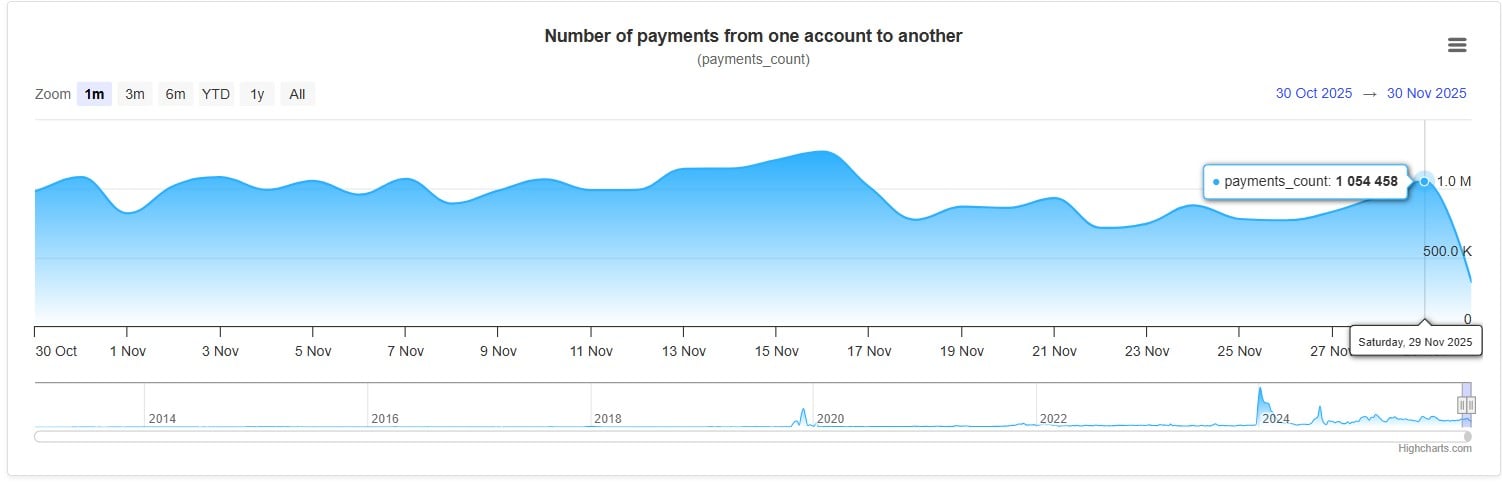 当价格未出现相应波动时,支付量骤增意味着什么?历史数据显示,XRP账本支付数激增通常由两类活动驱动:机构或自动化系统调整流动性路径,以及关联支付通道或测试吞吐量的零售级机器人活动爆发。