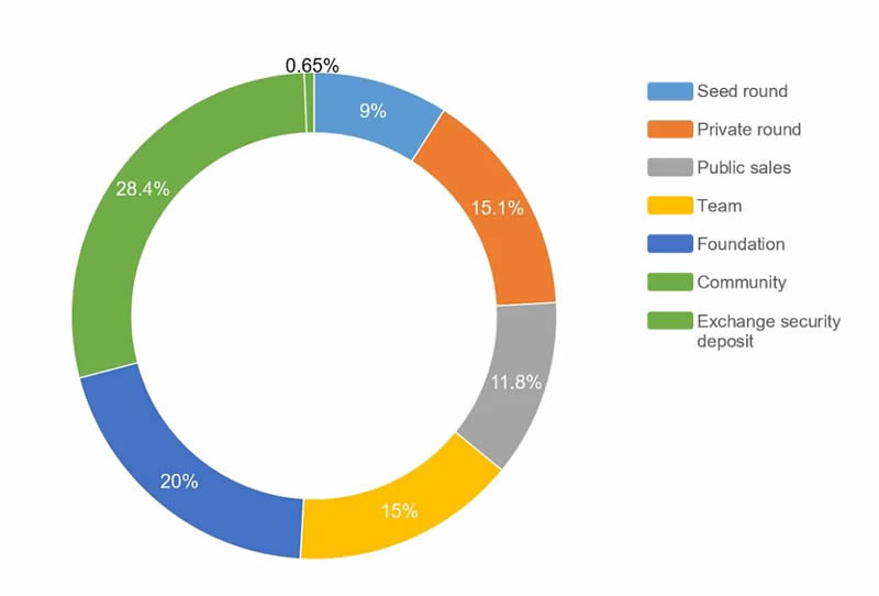 TARA代币总量120亿,当前流通量53.6亿。分配结构注重长期发展: