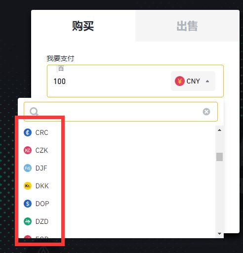 4. 设置支付方式:支持包括美元在内的百余种发比支付,输入购买金额(示例为100元ECOP)。