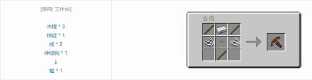 3. 在工作台的第三行中间位置放置 1 块铁锭,上下两边各放置 1 根木棍。这一步完成了弩机的制作。