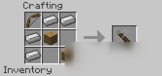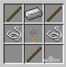 2. 在工作台的第二行中间位置放置 1 块铁锭,左右两边各放置 1 根木棍。这样就完成了弩臂的制作。
