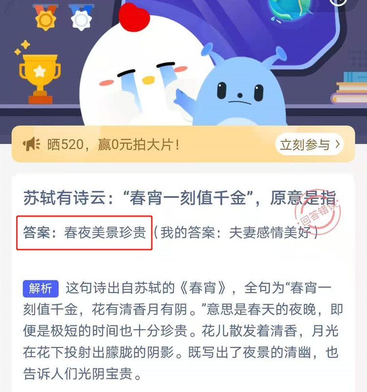 1:苏轼有诗云:“春宵一刻值千金”,原意是指?