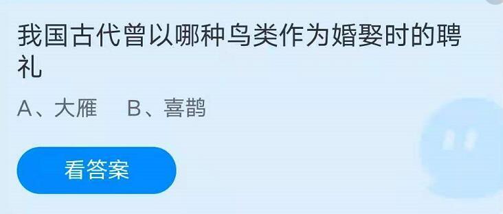 2:我国古代曾以哪种鸟类作为婚娶时的聘礼?