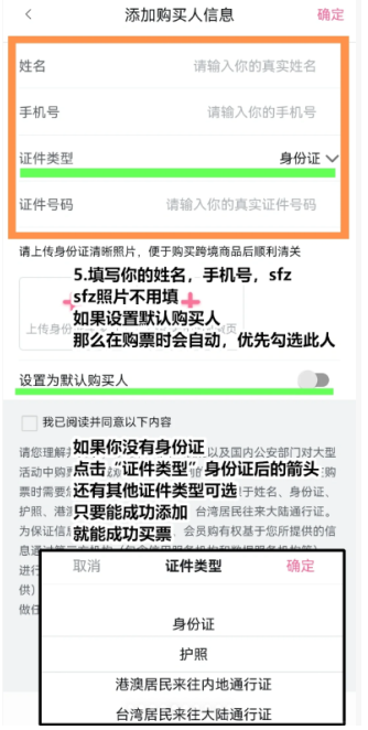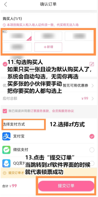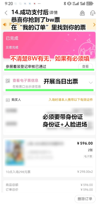根据实际需求添加所有同行人员信息(注意:BW场次需等待官方正式开售)