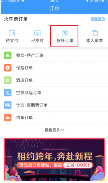 12306候补订单在哪里查看