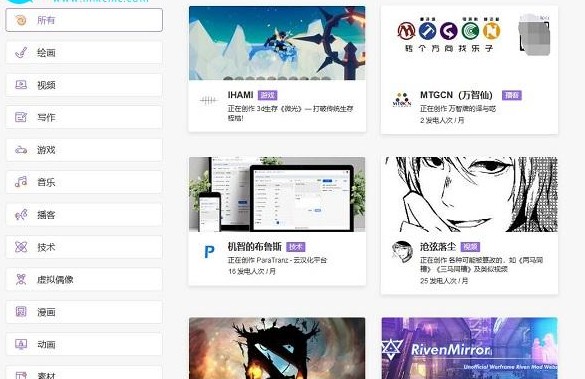 成功登录后,用户可浏览平台内各领域优质创作者及其发布的赞助方案内容。通过筛选功能快速找到感兴趣的项目。