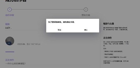 平台提供创作者身份转换功能。点击"成为创作者"按钮后,按要求填写手机号等基本信息,提交创作方案即可开通权限。