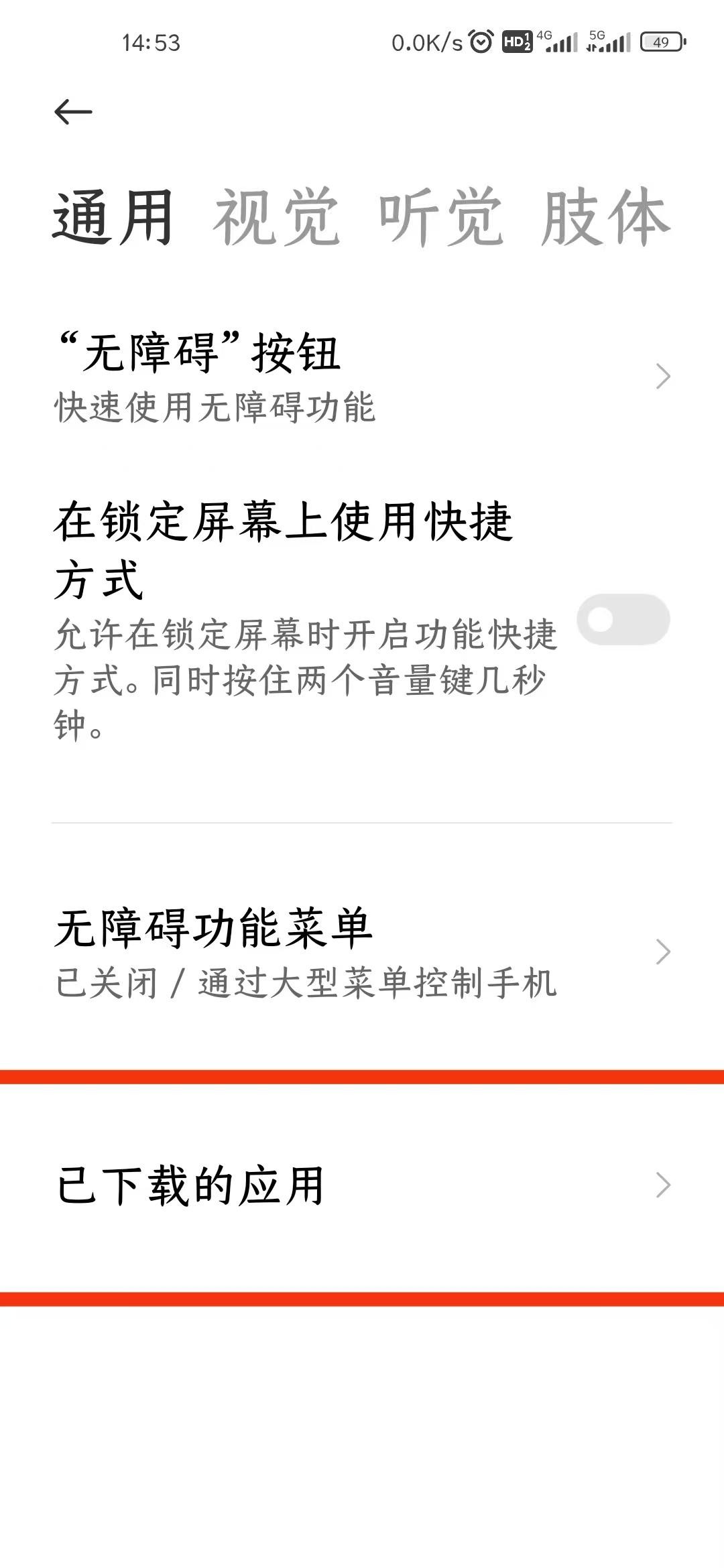 在已下载应用列表中找到并启用李跳跳无障碍权限: