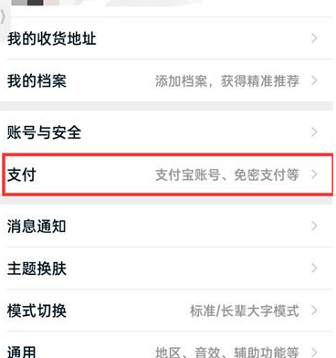 在设置选项列表中,找到并选择支付相关设置项目继续下一步操作。