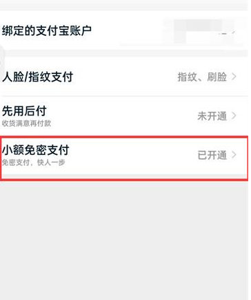 支付设置界面中会显示小额免密支付选项,直接点击该功能进入管理页面。
