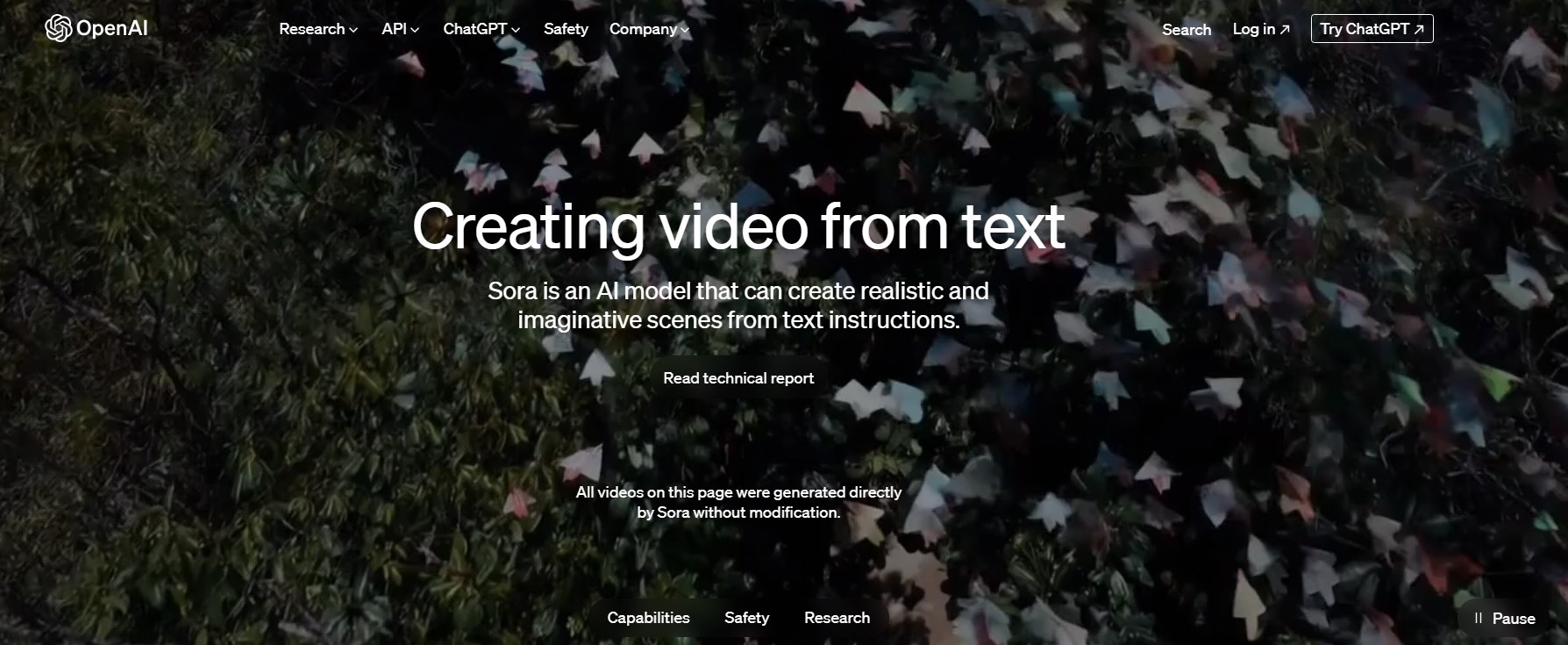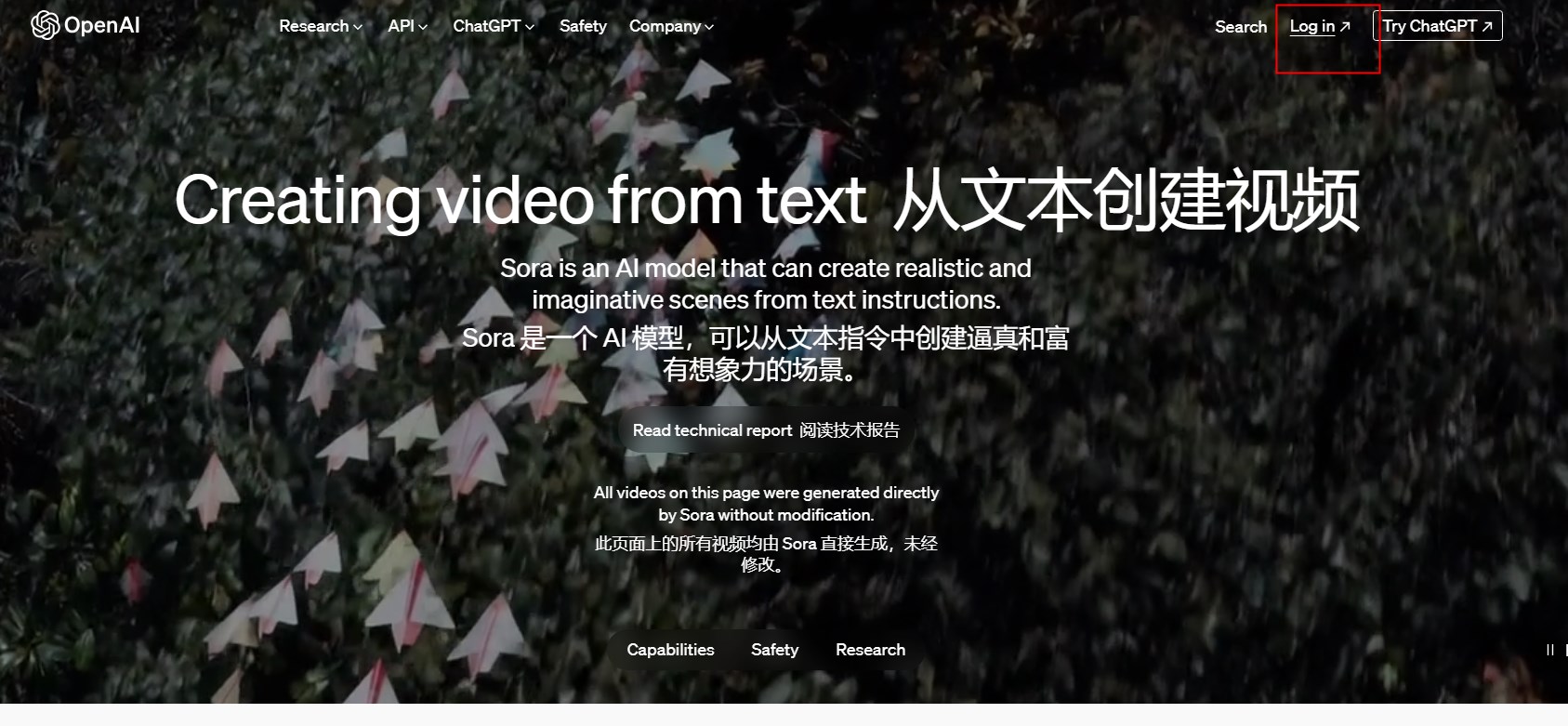 通过上述网址即可直达Sora文本视频模型的官方页面。