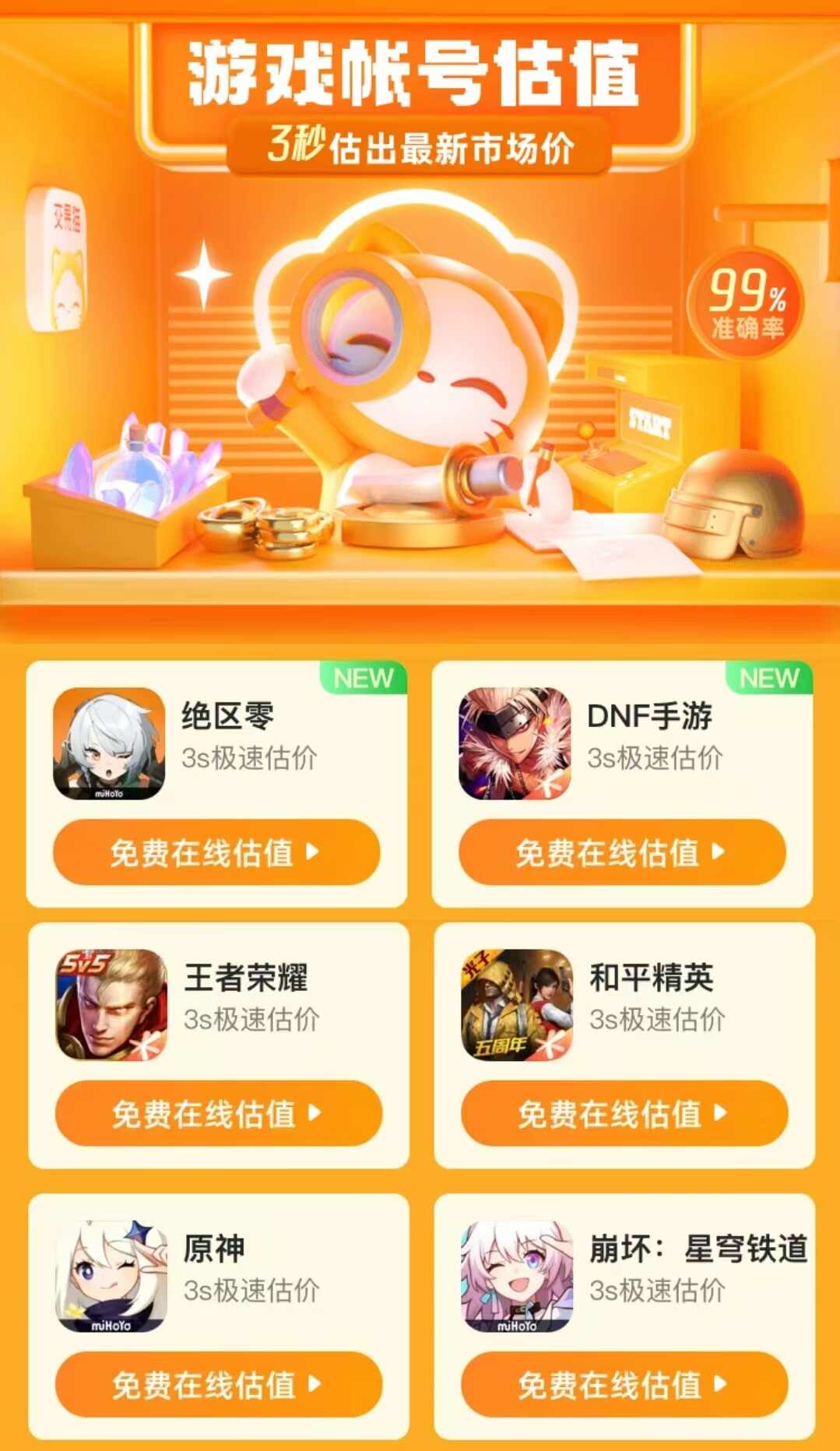 在APP内进入“账号估价”功能模块后,即可选择《崩坏:星穹铁道》专区。系统将依据角色数量、稀有度(如五星角色是否满命)、光锥配置、行迹等级、模拟宇宙通关进度、开拓者等级、遗器词条强度等维度进行综合评估,生成参考报价。除崩铁外,该服务同样适用于其他高热度游戏账号估值。