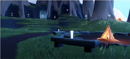 从霞谷溜冰场左手边的门进去,就可以看到霞光城了,看到的第一个拱门顶上就是冥想位置了