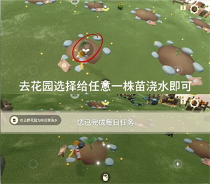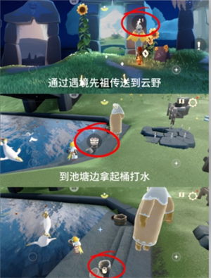 通过活动先祖前往云野神殿前面的向日葵花园,去水池边拿桶打水后给任意一株向日葵浇水即可