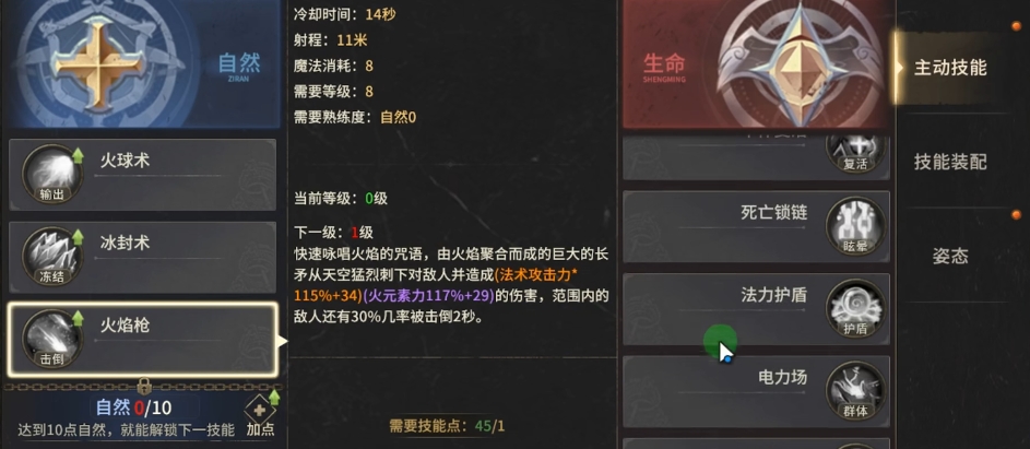 需特别注意技能栏位限制与资源分配策略:角色同时可携带技能数量有限,应根据当前副本类型与队伍配置动态调整技能池。前期集中加点于高频使用技能(如火球术、冰霜星星、雷电术),暂缓非核心被动或低频辅助技能的投入。技能冷却管理亦需结合走位节奏优化,确保关键控制与爆发技能在团战关键节点准时可用。