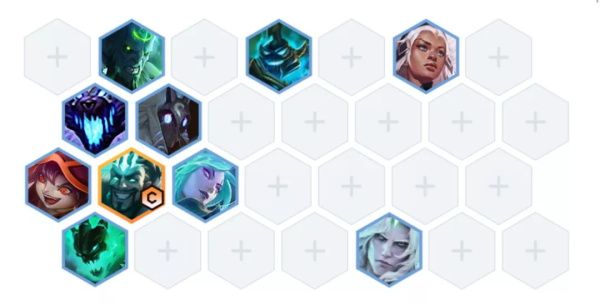 锤石站角落勾对面c位,德莱文倒数第二排,偷攻速就偷卡特璐璐这种不需要攻速的,其他围绕德莱文,人马芮尔顶在第一排,佛爷戈和卡特老规矩放中间防止吃控制,其中佛爷戈可以对准对面c位,直接同化对面c位。