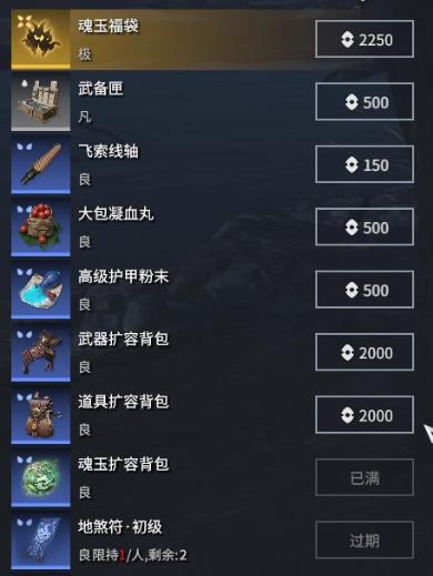 背包格子这个东西还是多多益善,能买就买,这里仅给出一个重要程度排行建议:魂玉扩容>道具扩容>武器扩容