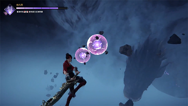 就是这个紫色的光球,等到圈快缩完的时候振刀反弹,不过这个任务要求比较宽松,而且振刀判定时间也挺长的,玩家可以放心尝试两个振刀时机,基本上都能过。