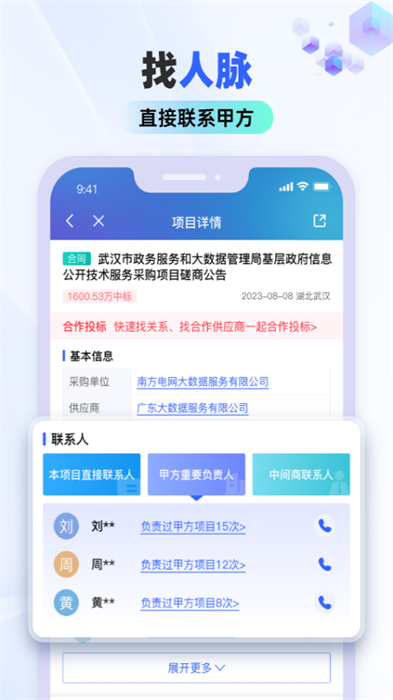 2、能够快速查询各种招标中标,项目信息等,还能进行详细的分析和推演;