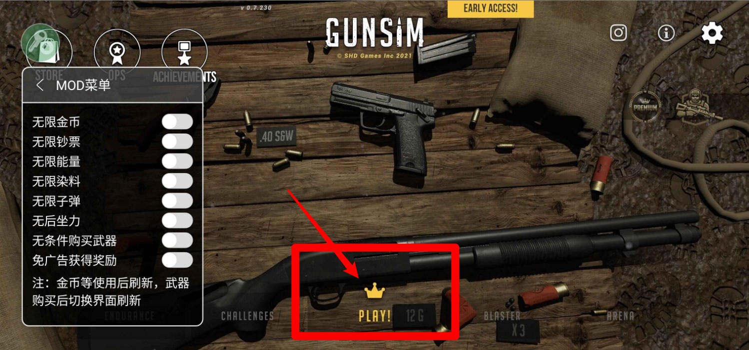 1.点击“PLAY”进入训练场,系统将分配基础武器供你开始射击挑战。