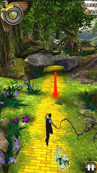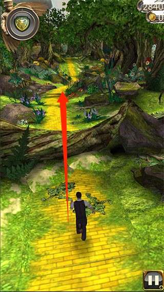 2、上划屏幕,跳过高的障碍,继续逃亡。