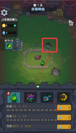 3、抵抗僵尸的进攻,获得水滴可以提升植物的属性。