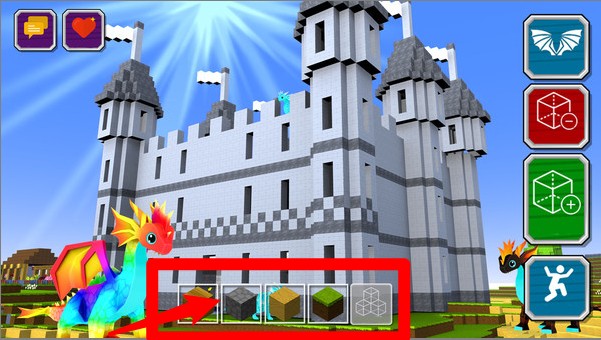 2.材料栏:快捷选择不同类型方块(草地、砖块、岩石等),点击即可切换建材。
