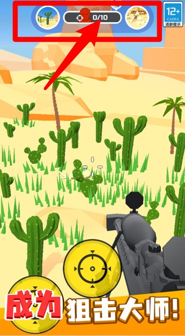 3.上方击杀目标提示:画面顶部显示当前目标数量“0/10”,即为你本关必须击杀的敌人数量,务必精准计数,避免漏网之鱼。