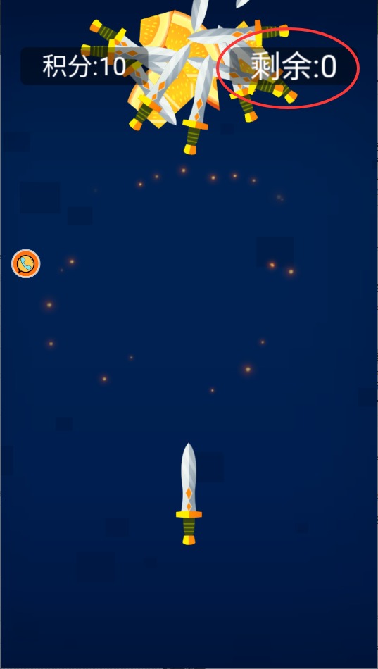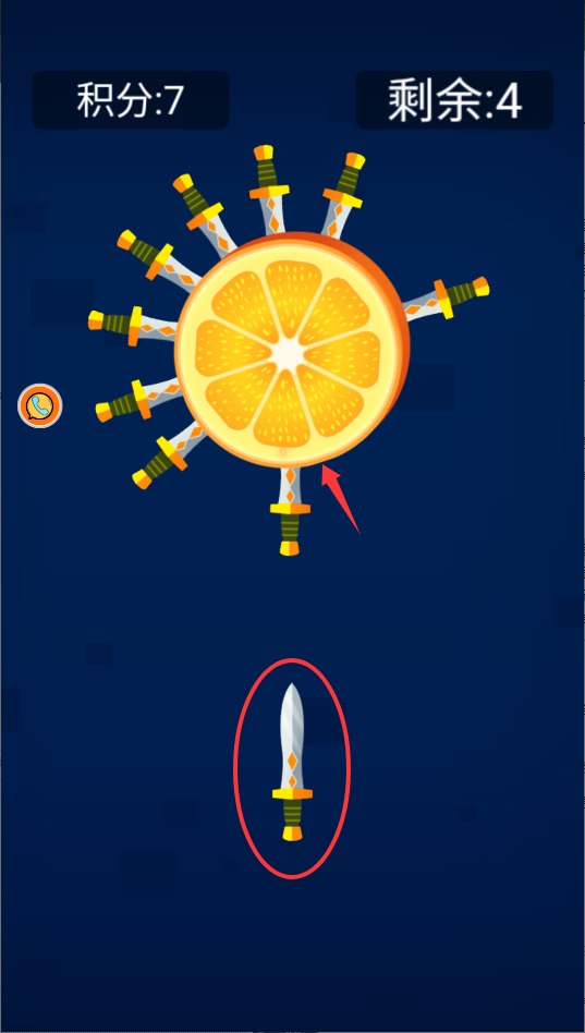 2、快速点击屏幕发射飞刀,注意控制发射节奏和角度,避免碰到已经插在靶子上的刀具导致游戏失败。