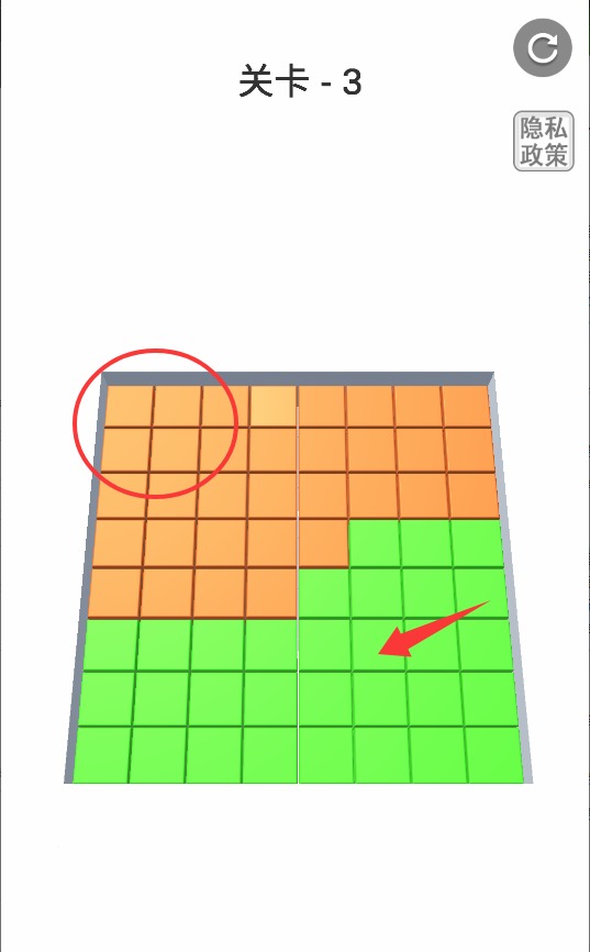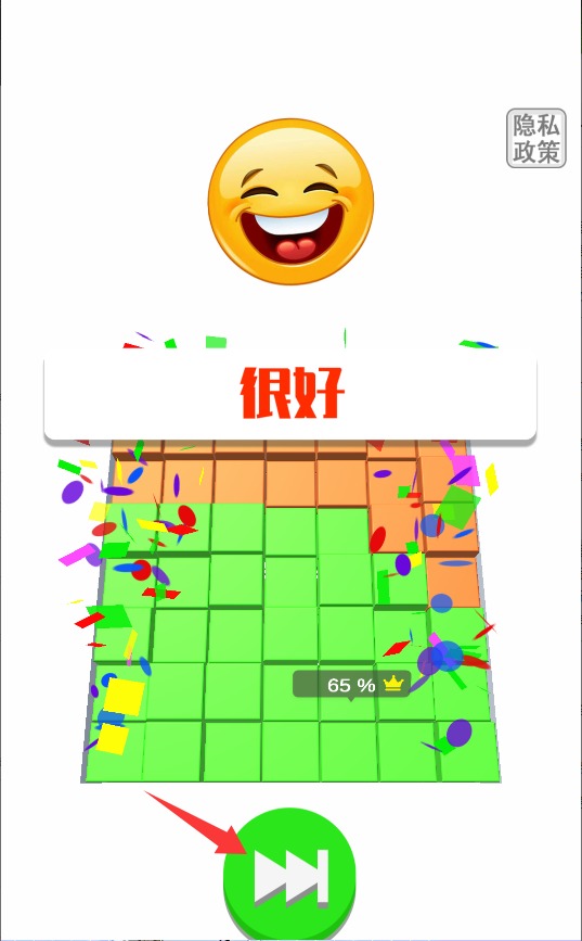 2、用手指滑动屏幕移动积木,当绿色积木的数量超过对方积木时,画面会闪烁提示本关挑战成功。