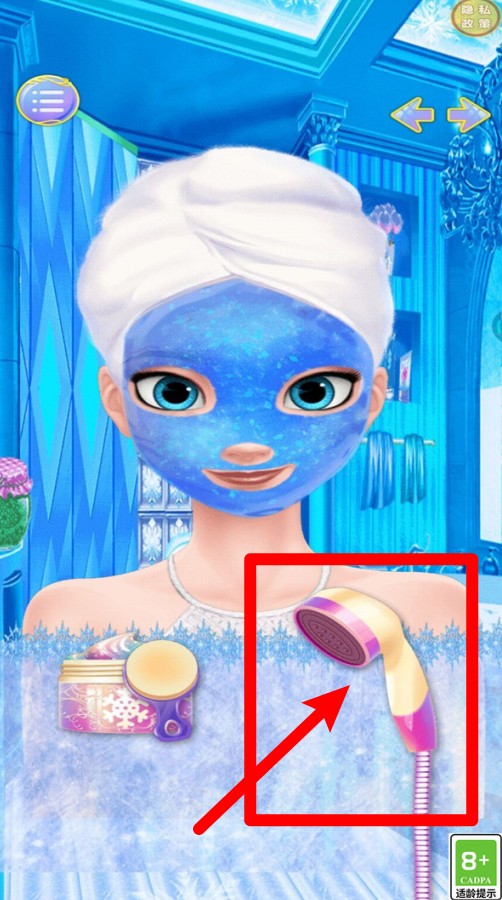 3.等待片刻后,使用右下角淋浴喷头轻柔冲洗面膜,恢复皮肤清爽。
