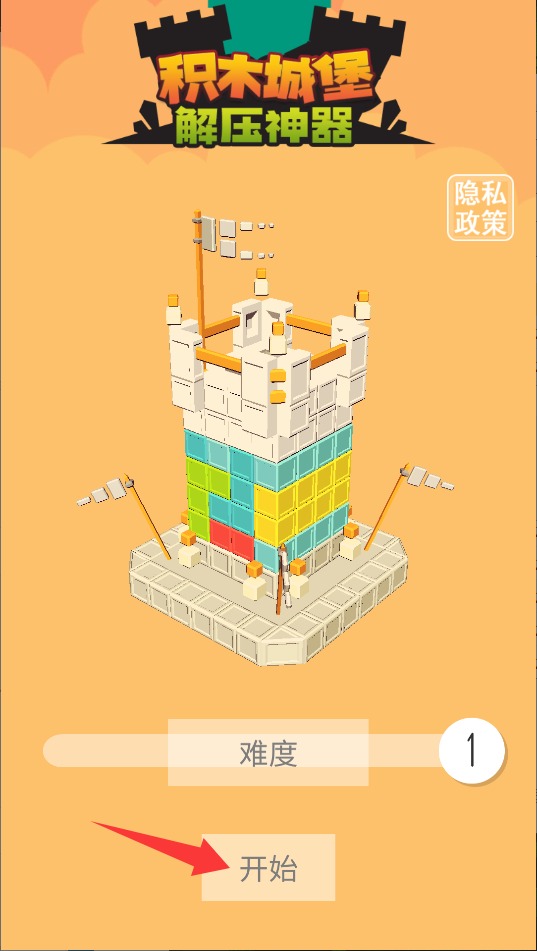 1、进入儿童积木城堡乐园后,首先点击屏幕中央的"开始游戏"按钮,即可开启新手闯关之旅。