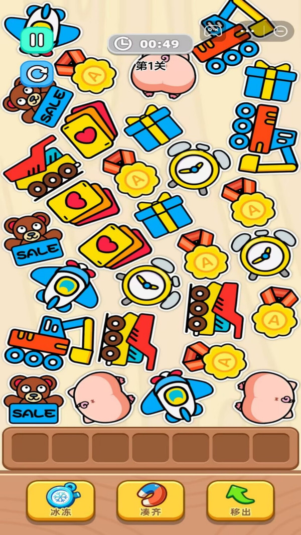 2.点击或滑动相同图案来进行消除,达成每关任务目标以解锁更多新玩法挑战。