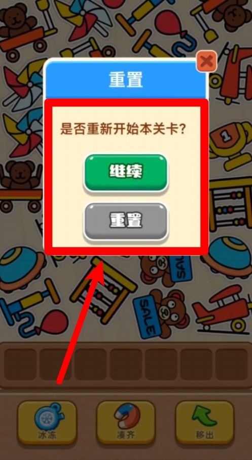 3.点击重置按钮可重开关卡挑战,点继续按钮可保存当前进度继续游戏。