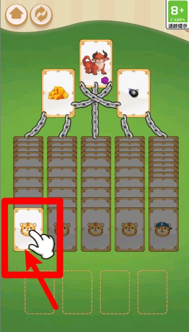 2.点击下方卡牌选择相同图案,依次解锁上方链条中的锁定卡牌。
