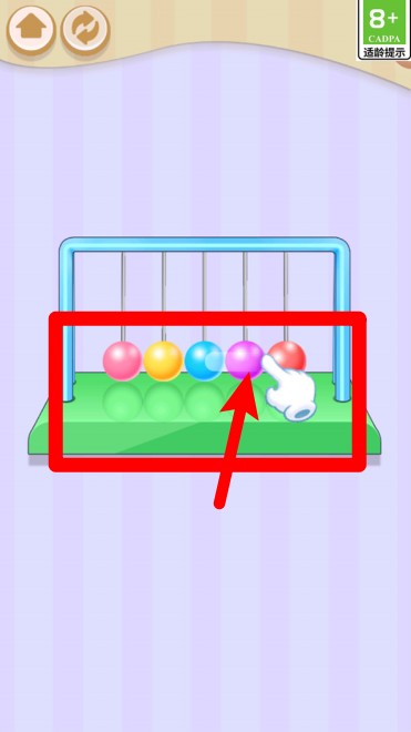 3.点击彩色小球启动摆球运动,观察球体碰撞和反弹效果,体验物理乐趣。