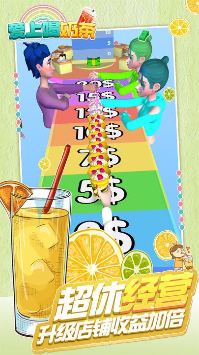 1、创新奶茶主题跑酷玩法,将制作奶茶的过程融入跑酷游戏。收集珍珠、椰果等材料,躲避障碍物,最终完成一杯完美奶茶。