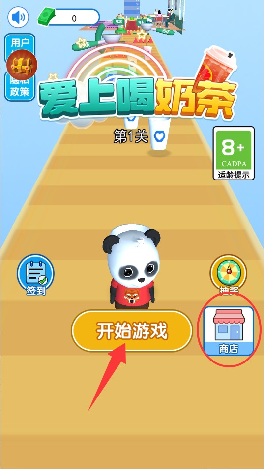 1、进入游戏主界面后点击开始按钮,完成每关挑战可获得金币奖励,积攒足够数量即可在商城解锁新口味奶茶。