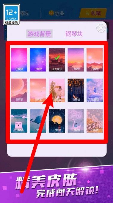 1.通过闯关解锁精美皮肤,玩家可以更换背景和钢琴块,让游戏视觉体验更丰富。