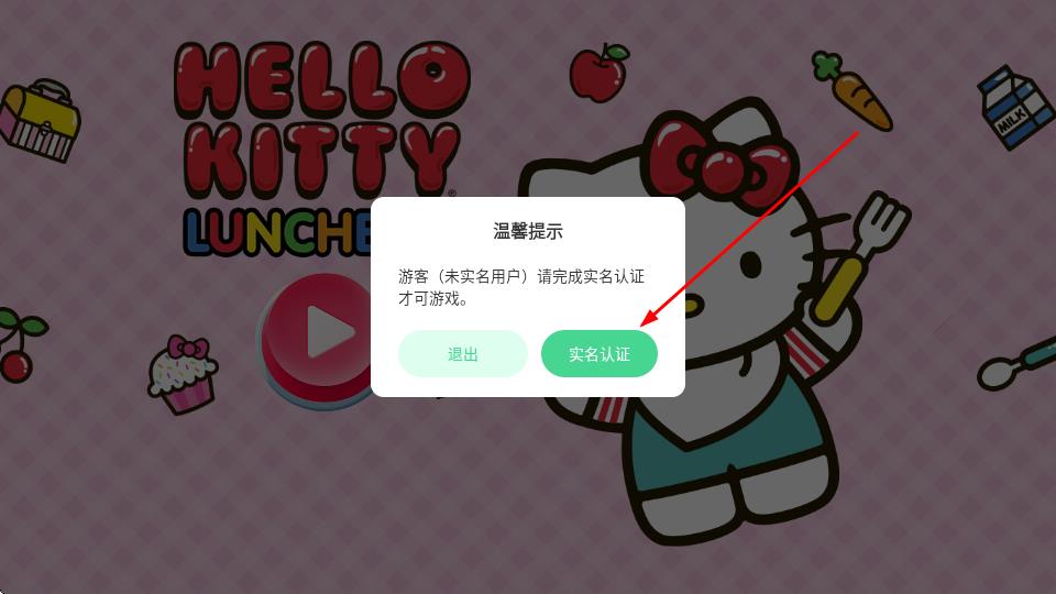 1、进入游戏主界面,点击【实名认证】按钮,开启新手教程,在凯蒂猫指引下,点击选择实名认证。