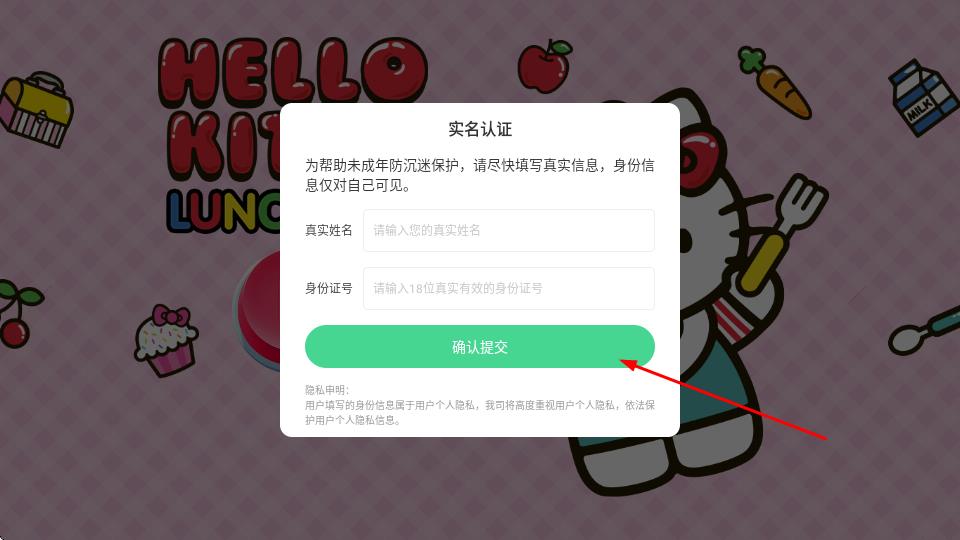 3、填写完成后,点击确认提交,完成实名认证,开始游戏。