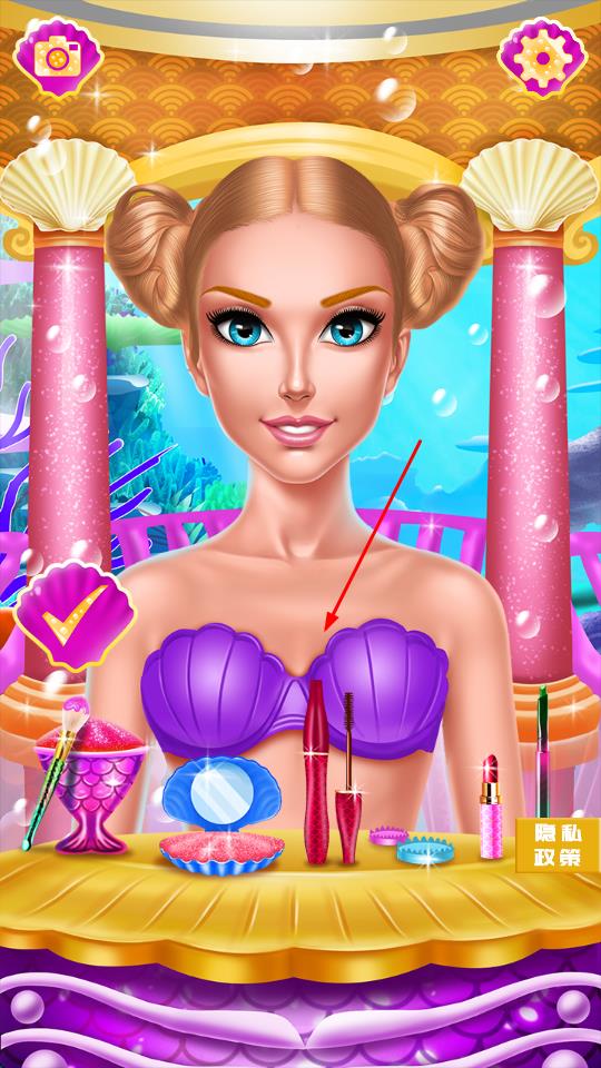1、进入游戏后首先选择心仪的美人鱼公主形象,点击美妆台挑选眼影、腮红等色彩道具,滑动屏幕为公主涂抹渐变妆容,打造灵动眼妆与珊瑚色唇彩。