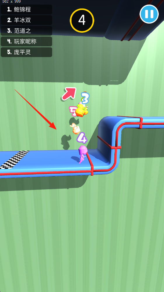 2、游戏过程中,让紫色角色在赛道上前进,争取超越其他角色提升排名。