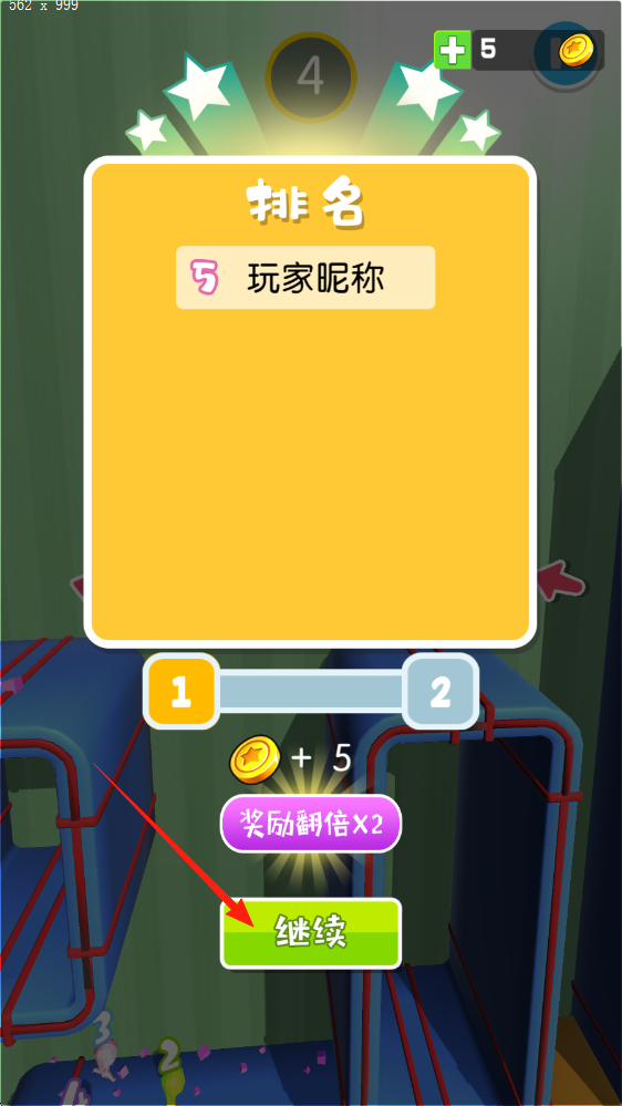 3、比赛结束后,查看排名并获取奖励,点击“继续”按钮,可开启下一轮游戏。