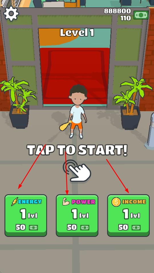 1、游戏开始前,玩家可花费金币升级“ENERGY”“POWER”“INCOME”等属性,提升角色能力。