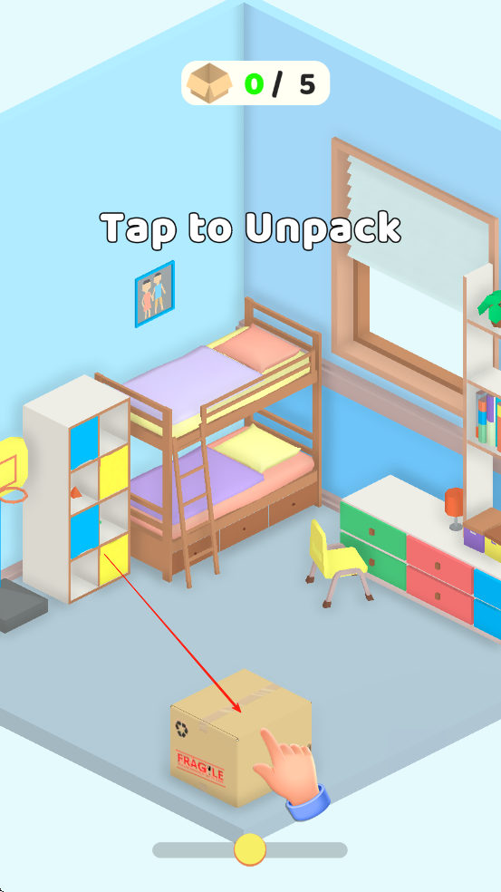 打开包装是一款以整理收纳为主题的清新休闲作品,玩家将化身为空间规划小能手,在刚搬迁的新居场景中开启整理挑战,以简约明快的画面风格呈现杂乱的房间与数百件待整理物品,从餐具、衣物到书籍、装饰品,每件物品都有其专属位置,玩家需仔细观察物品特征,通过拖拽操作将零散物品逐一归位。