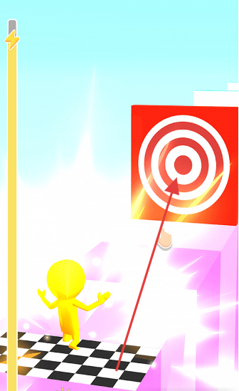 1、操控黄色小人在色彩鲜明的场景中前进,朝着类似靶心的目标移动,可能需精准到达目标点获取分数或奖励。